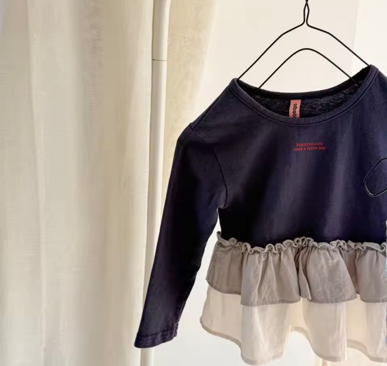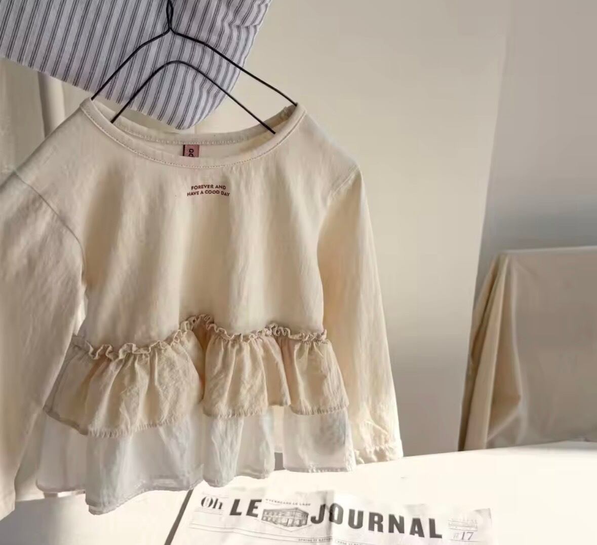 2段フリルコットンシャツ